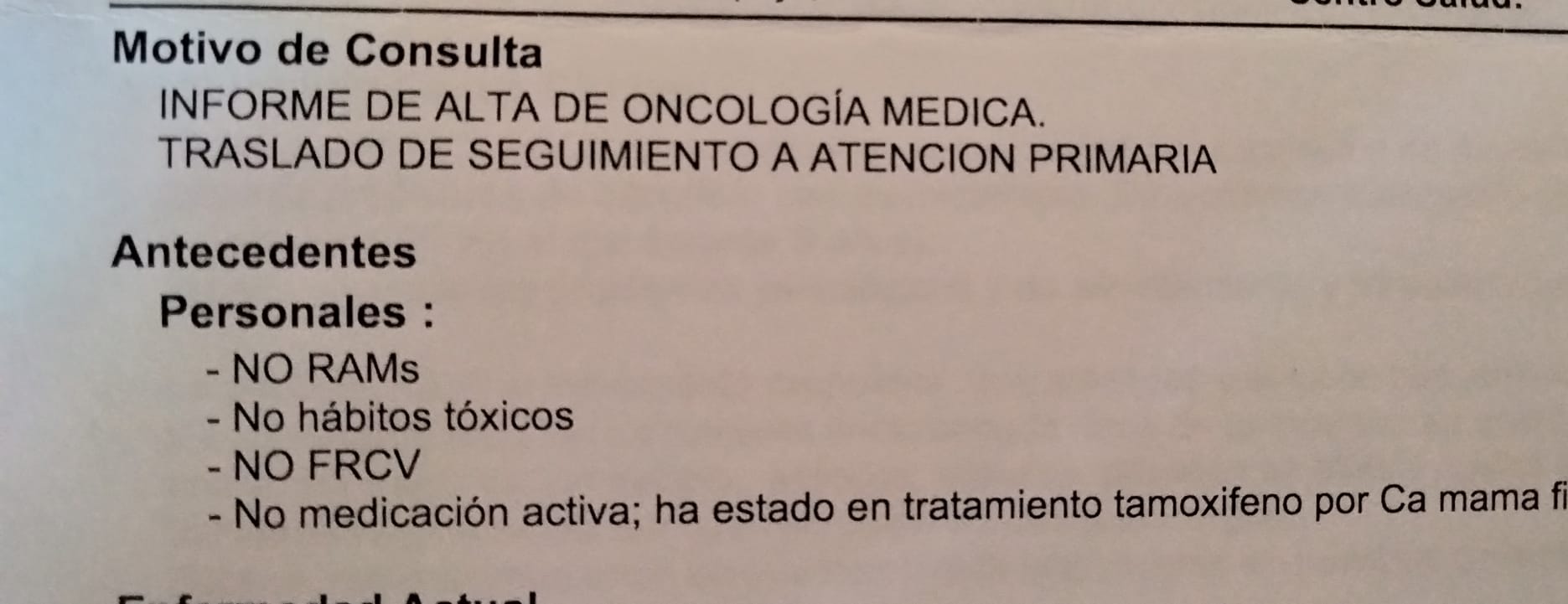 Por otra parte: el alta. Qué momento más... raro cuando me lo dijo. Si bien es cierto que la carta me ha llegado ahora, el informe oficial de mi alta. Ya no soy paciente oncológica. "Ya no estoy enferma", aunque debo decir que solo en algunos momentos sentí que lo estaba.